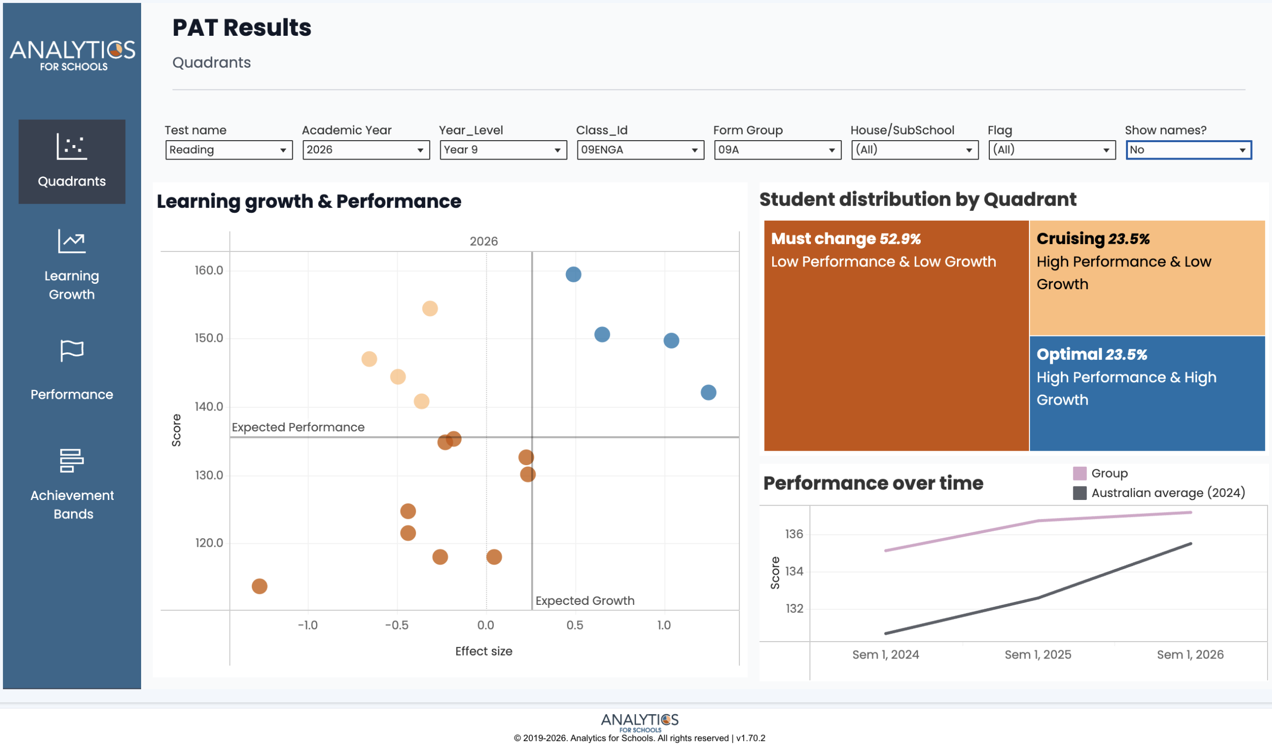 The PAT Dashboard brings performance and growth together in one clear view. Schools can: